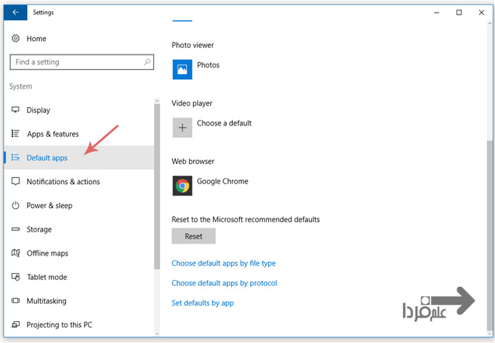 ■ در پنجره System از منیوی سمت چپ روی گزینه Default apps کلیک کنید .