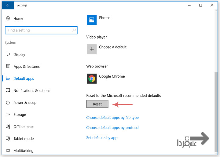اگر حال و حوصله این کارا رو ندارید یا به اشتباه برنامه پیش فرضی رو عوض کردین می تونید فقط با یه کلیک همه تنظیمات مربوط به برنامه های پیش فرض ویندوز 10 رو به حالت اول برگردونید ! برای اینکار فقط کافیه مراحل زیر رو برید :