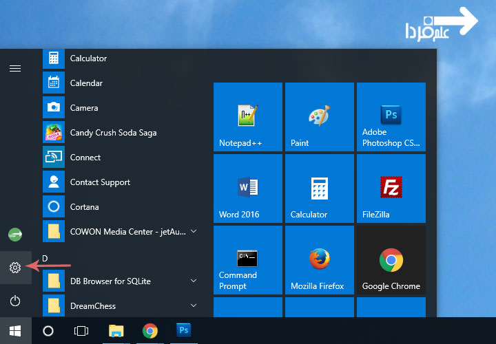 ■ منیوی Start رو باز کنید و بعد روی آیکن Settings کلیک کنید .