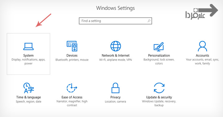■ در پنجره Settings روی گزینه System کلیک کنید .