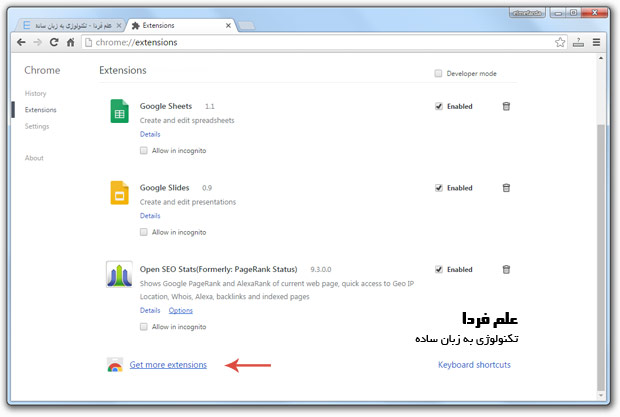 ■ حالا روی گزینه Get more extensions کلیک کنید تا برید تو مارکت گوگل کروم .