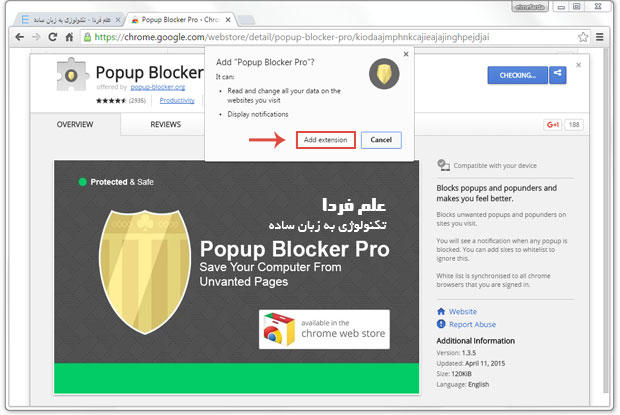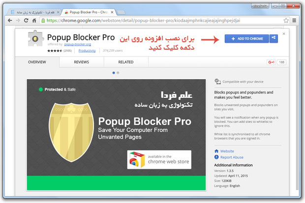 استفاده از افزونه Popup blocker pro برای جلوگیری از باز شدن پاپ آپ در گوگل کروم