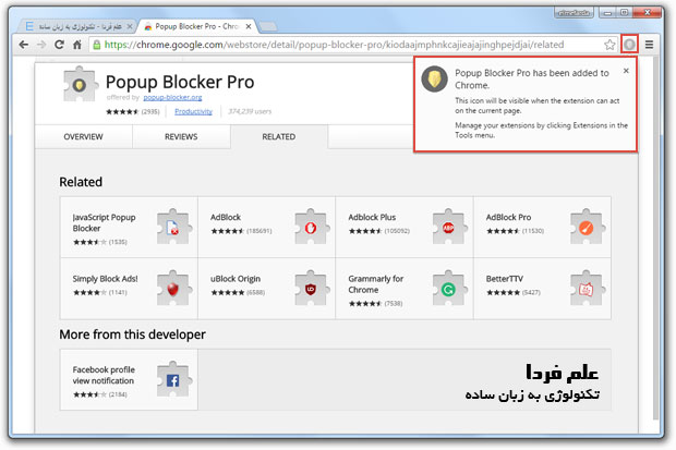 ■ خب افزونه Popup blocker pro روی مروگر تون نصب شد .