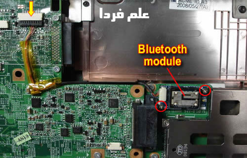 ویژگی هایی مثل وای فای ، بلوتوث ، USB و … نیازمند یک رابط سخت افزاری است . این رابط سخت افزاری به صورت یک چیپ ست یا همون آی سی هست که کنار خودش هم یک سری قطعات الکترونیکی موجودن . اندازه این چیپ ها خیلی کوچیکه و روی مادربورد یا به صورت لحیم شده یا به صورت بورد ( همراه با کابل رابط یا فلت ) دیده میشن . مثلا یکی از چیپ ست های بلوتوث موجود روی مادربورد لپ تاپ رو در شکل زیر می بینید :