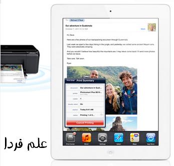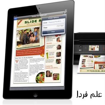 ویژگی Airprint در آی پد به شما اجازه پرینت عکس ، محتویات ایمیل ، صفحات وب و کتاب هاب الکترونیکی را می دهد . احتیاج به دانلود نرم افزار نیست ، نیاز به نصب درایور نیست و هیچ کابلی هم در کار نیست . تنها یک اشاره کافیست تا چیزی که در صفحه نمایش خود می بینید را در قالب کاغذ در دست بگیرید . می توانید عملیات پرینت را آغز کنید و در همین حین به کارهای عادی خود در آیپدتان بپردازید .