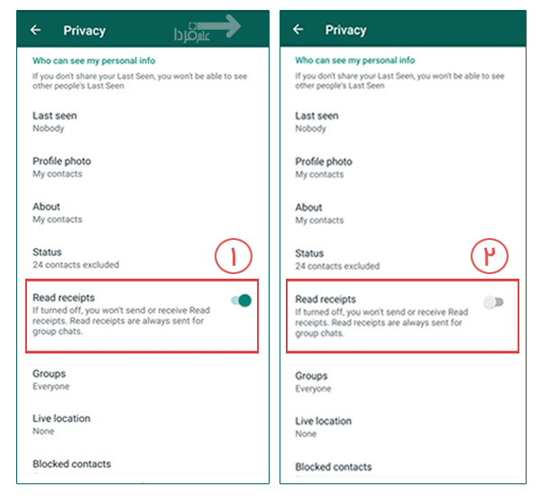 ■ وسطای صفحه Privacy یه گزینه میبینید با عنوان Read receipt یا رسید خوانده شده.