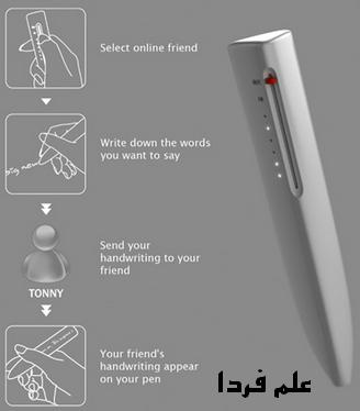 به حق چیزای ندیده و نشندیده . البته این یکی هم دیده شده و هم شنیده میشه . خودکاری که در تصویر می بینید برای چت کردن با دوستانتون به کار میره . اجزای تشکیل دهنده این خودکار یک نمایشگر داخلی ، نوک ، یک کلید چند حالته و چند لامپ LED برای نمایش حالتهای مختلف است . این خودکار به اینترنت وصل می شود و دوستانی که آنلاین هستند رو شناسایی می کنه . متنی رو که قصد ارسال دارید رو رو یک ورقه می نویسید و خودکار به طور اتوماتیک اونو به دوست شما ارسال می کنه . در بالای این خودکار یک کلید انتخاب قرار داره که به شما اجازه انتخاب دوستانتون رو می ده یعنی هر چراغ نشاندهنده یک ID مشخص است . از طرفی متنی که دوست شما ارسال می کنه رو روی نمایشگری که داخل خودکار جاساز شده خواهید دید . دیگه چت به این راحتی کجا می تونید پیدا کنید .