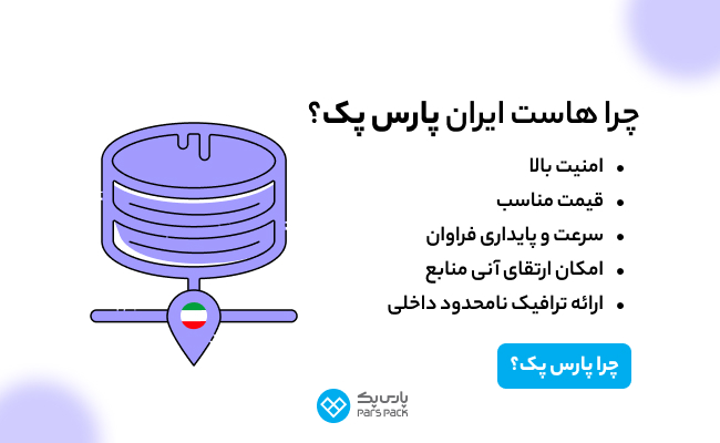 بنابراین اگر بهدنبال کیفیت، سرعت و امنیت هستید با خرید هست ایران از پارس پک میتوانید به یک سرویس میزبانی وب با کیفیت بالا، پشتیبانی فنی مطمئن، سرعت و عملکرد عالی، امنیت در سطح جهانی و قیمتگذاری رقابتی دست پیدا کنید.