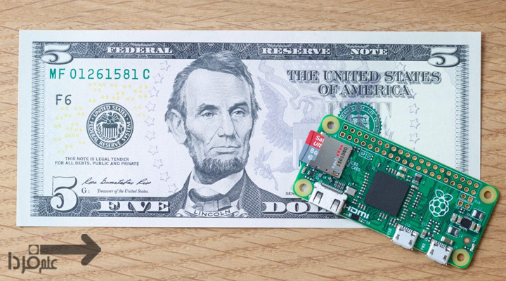 رزبری پای zero ورژن کوچیک شده و ارزون تر رزبری پای هستش . قیمت مدل zero فقط 5 دلاره ! پورت های ورودی و خروجی کمتری رو ساپورت میکنه ، مثلا خروجی صدا و تصویر آنالوگ نداره . سایز رزبری پای خیلی خیلی کوچیکه . تو تصویر زیر میتونید سایز رزبری پای زیر رو قشنگ متوجه بشین .