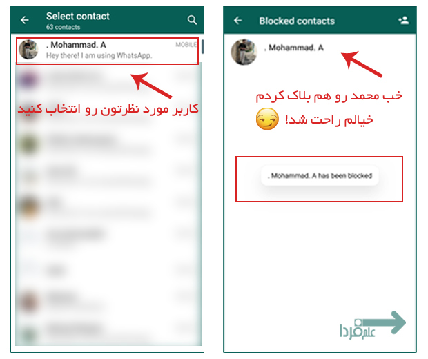 در ادامه روش بلاک کردن در نسخه موبایلی و نسخه کامپیوتر واتساپ رو بهتون یاد میدم و در پایان بهتون میگم چطوری میتونید کاربر بلاک شده رو از بلاک در بیارید. دوست باشید باهم زندگی کوتاهه ?