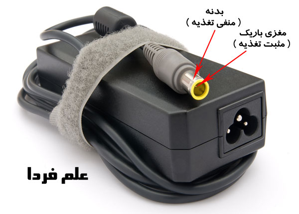 در مورد عکس بالا : برخی لپ تاپ ها سه تا سیم دارن ، منفی ، مثبت و سیم دیتا که این سیم دیتا وظیفه کنترل جریان شارژ رو داره . یعنی در برخی شارژرها 3 تا کانکتور وجود داره ، کانکتور خارجی منفیه ، کانکتور داخلی مثبته و مغزی باریک هم دیتا هست .