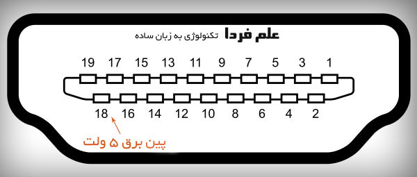 در پورت یا کابل HDMI فقط یه پایه هست ( پایه 18 ) که برق 5 ولتی داره اونم با جریان فقط 55 میلی آمپر .