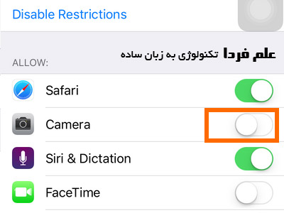 برای غیرفعال کردن دوربین آیفون مراح زیر رو انجام بدین :