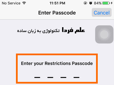 ■ در این مرحله بازم رمز عبور مربوط به Restrictions رو باید وارد کنید .