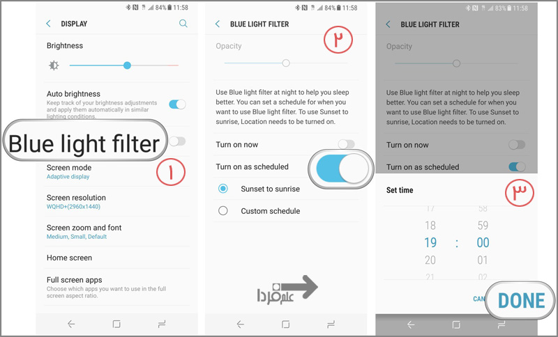 تنظیمات فیلتر بلولایت Blue light filter در گوشی های سامسونگ اس 8 و نوت 8
