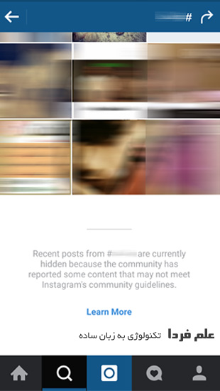 من صفحات و تگ های مختلف اینستاگرام رو بررسی کردم . در حال حاضر فقط هشتگ های غیر اخلاقی در اینستاگرام فیلتر شدن . یعنی اگر یه هشتگ غیر اخلاقی روی جستجو کنید فقط 36 تا از آخرین مطالب محبوب با تگ مورد نظر رو نمایش میده . وقتی به پایین لیست 36 تایی میاین اینستاگرام پیغامی رو نشون میده که براتون ترجمه کردم :