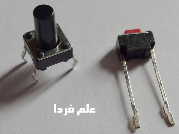دو مدل مختلف مایکروسوئیچ – ۴ پایه ( فشاری )  و ۲ پایه ( ضربه ای )