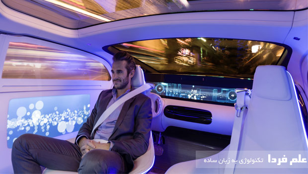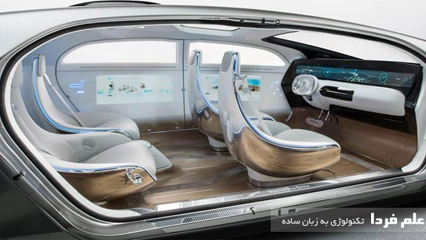 اما نکته جالب واسه بنز مرسدس F015 که در نمایشگاه CES 2015 معرفی شده اینه که صندلی هاش می چرخن یعنی شما می تونید داخل ماشین مثل اتاق نشیمن خونه روبروی هم بشینیدو باهمدیگه گپ بزنید و ماشین هم واسه خودش رانندگی کنه .