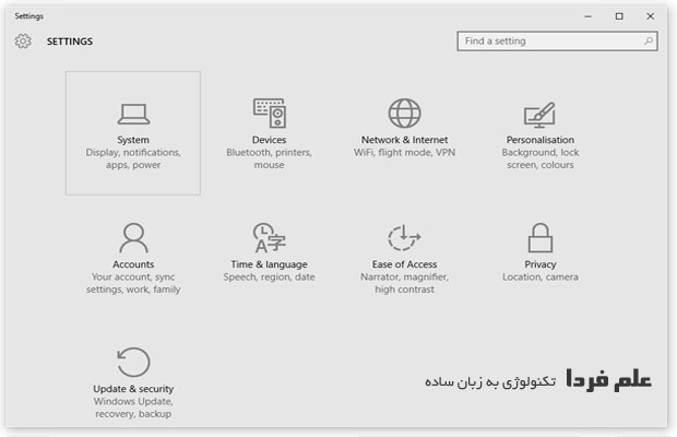 ■ در پنجره Settings روی گزینه System کلیک کنید .