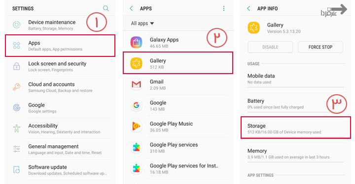 ■ حالا برید به قسمت Apps و برنامه گالری Gallery رو پیدا کنید.