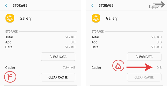 3- پاک کردن کش برنامه های مرتبط با گالری مثل دوربین