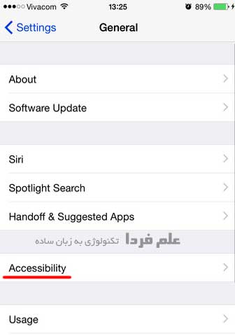 برای بر عکس کردن رنگ ها در آیفون 6 باید به تنظیمات برید و از اونجا گزینه General رو انتخاب کنید .