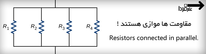 شکل بالا برای حالت سری بود حالا شکل پایین حالت موازی مقاومت ها رو نشون میده :