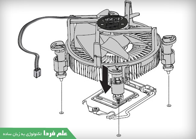 بعد از اینکه سی پی یو رو جا زدین ، باید حتما فن رو نصب کنید تا عمل خنک سازی انجام بشه . در مورد فن سی پی یو و همینطور روش صحیح جا زدن فن سی پی یو باید تو یه پست جداگونه توضیح بدم اما در حد تیتر یه سری توضیحات رو خدمت تون میگم .