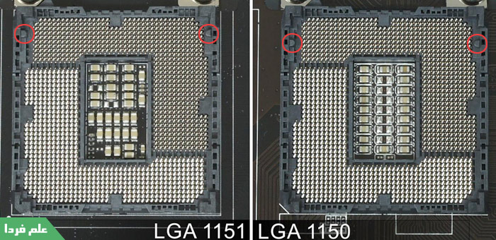 مثلا در شکل بالا می بینید که جای برآمدگی ها در سوکت 1150 و 1151 با همدیگه فرق می کنه .