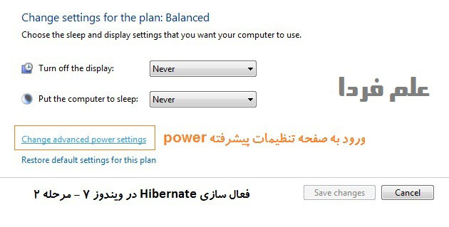 باسلام.ساختار ویندوز 7 من برای فعال کردن Hibernate با آنچه تو تصاویر نشان دادید متفاوت هست و گزینه خاموش و روش کردن این مد رو نداره و فقط مدت زمانی برای زمان شروع حالت Hibernate رو داره.