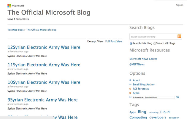 وبلاگ رسمی مایکروسافت توسط ارتش الکترونیکی سوریه هک شد !