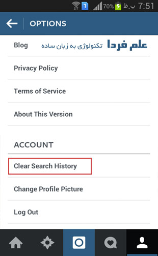 آموزش اینستاگرام ، پاک کردن تاریخچه جستجو