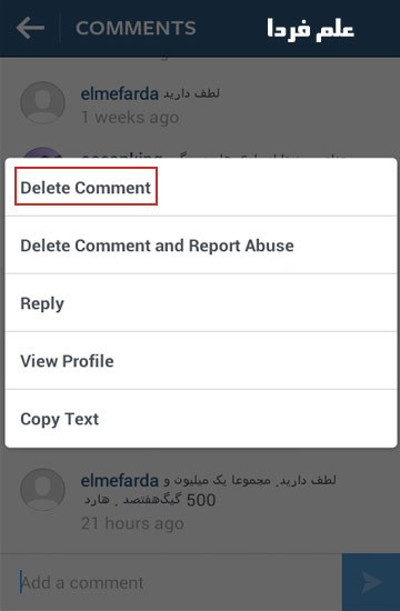آموزش اینستاگرام ، پاک کردن کامنت