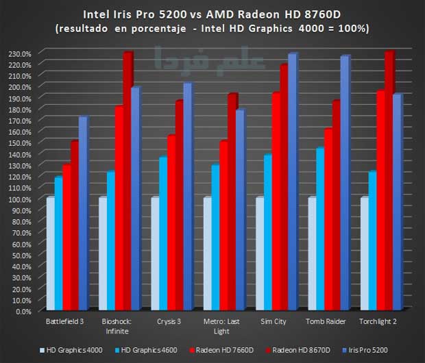 مقایسه پردازنده گرافیکی مجتمع iris pro 5200 با Radeon HD 8760D