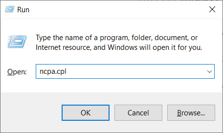 اجرای Network connections از طریق Run در ویندوز 10