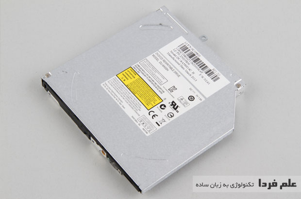 درایو نوری DVD با یه پیچ به بدنه چسبیده که اگه اون پیچ رو باز کنید به سادگی درایو نوری میاد بیرون .