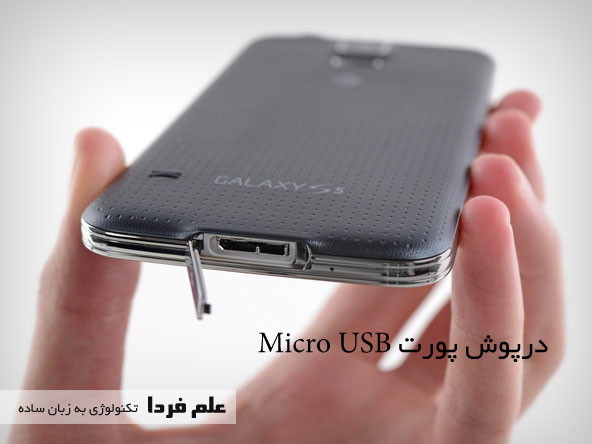 قبل از باز کردن Galaxy S5 درپوش پورت Micro USB نظر ما رو جلب می کنه که برای ضد اب بودن گوشی طراحی شده . پست مرتبط : گوشی ضد آب چیست ؟