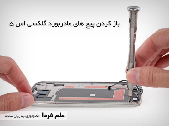 حالا واسه باز کردن مادربورد Galaxy S5 باید چند تا پیچ رو باز کنیم .