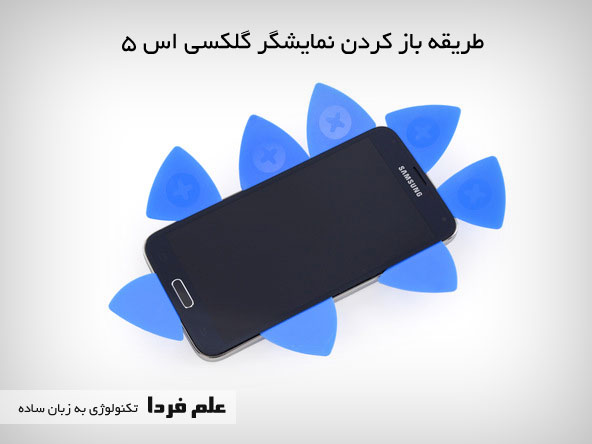 حالا وقت جدا کردن صفحه نمایش گوشی Galaxy S5 هست . برای این کار نیاز به ابزار کوچک و بخصوصی نیاز هست که در تصویر می بینید .