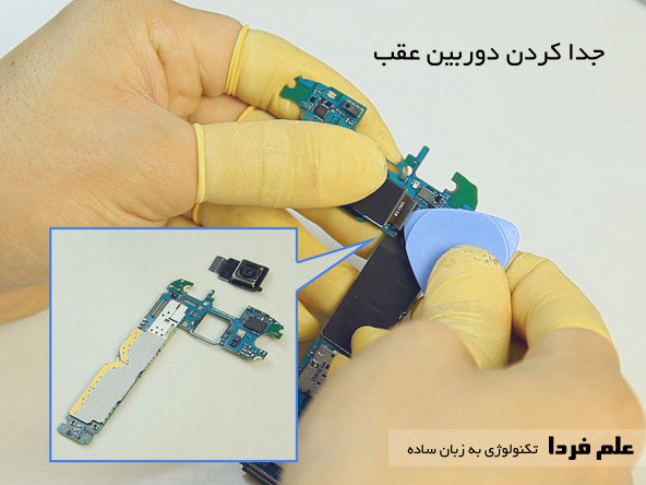 کانکتور دوربین عقب Galaxy S6 رو هم می تونیم با یه فشار ساده جدا کنیم
