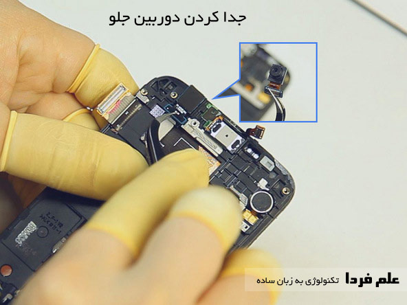 از روی مادربورد می تونیم دوربین جلوی گلکسی اس 6 رو جدا کنیم