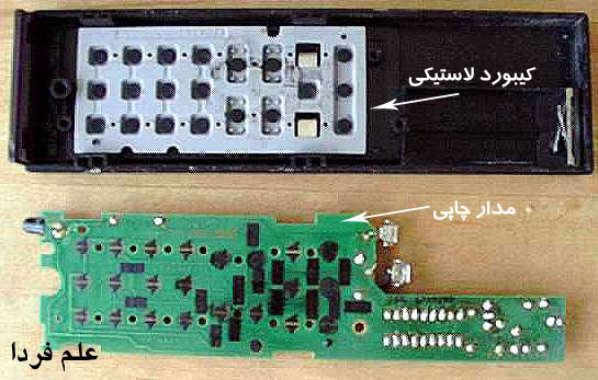 وقتی یک کنترل رو باز می کنید با صحنه ای شبیه به عکس زیر مواجه میشید . یک کیبورد لاستیکی که رو مدار چاپی سبز رنگ قرار داره . روی این مدار سبز رنگ ، کلید هایی طراحی شدند که با فشار کیبورد ، به هم وصل میشن دقیقا مثل این میمونه که کلید برق رو روشن می کنید .