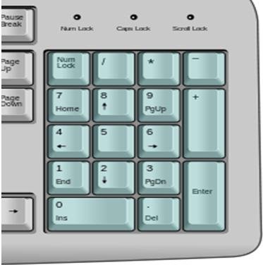 بخش کلید های ماشین حسابی از ابتدای ورود کیبورد ها همراه آن ها نبوده و اخیرا به کیبورد ها اضافه شده است، این قسمت چون به نوعی یک ماشین حساب محسوب می شود کاربرد زیادی در فعالیت های تجاری و محاسباتی دارد اما قسمت جالب این است که این کلید ها استفاده ی دیگری هم به جز نوشتن اعداد دارند زمانی که کلید «Num Lock» خاموش است کلید های 4،8،6،2 عملکردی مانند «Arrow Keys» و شماره های 7،9،1،3 عملکردی مانند «Home، Page up، Page down، End» دارند .