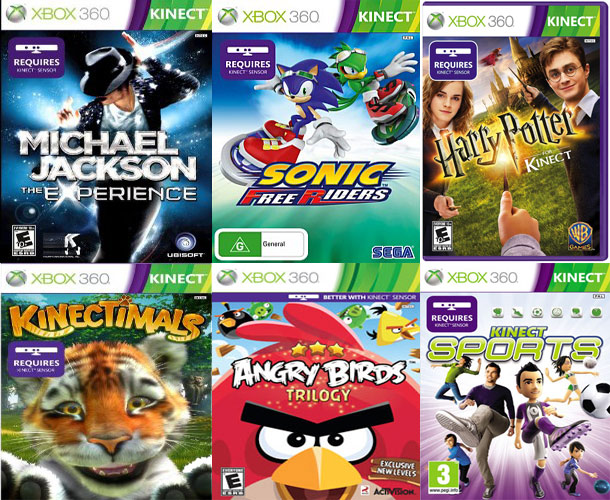 ■ بازی kinect Sports ، بازی Dance Central ، بازی Harry Potter ، بازی جنگ ستارگان ، بازی مایکل جکسون ، بازی پرندگان خشمگین ، بازی Kinectimals ، بازی سونیک و خیلی بازی های دیگه .