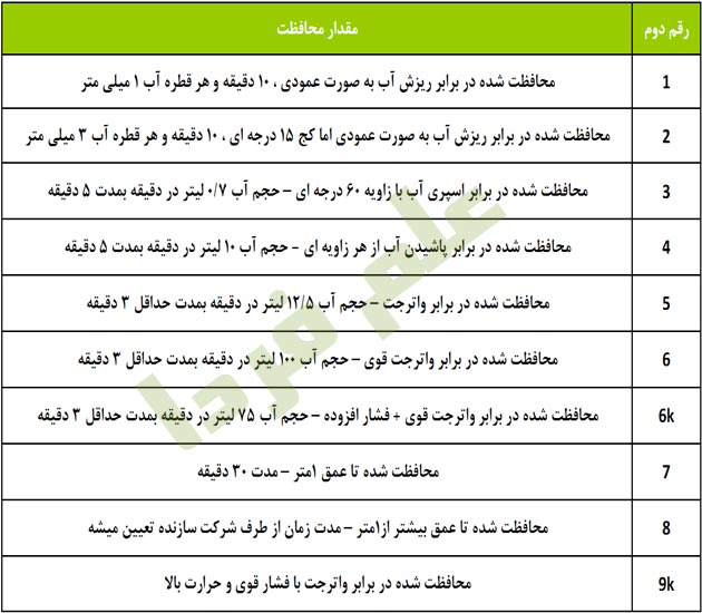 جدول IP Code برای گوشی ضد آب - محافظت دربرابر آب