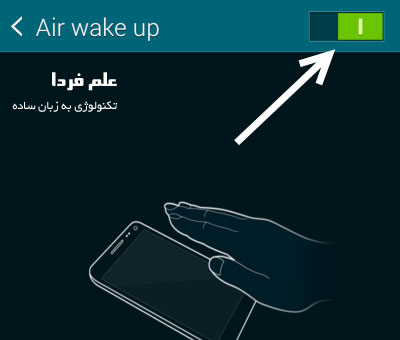Air wake up به شما اجازه میده با حرکت دادن دست تون بالای نمایشگر گلکسی اس ۵ ، نمایشگر رو روشن کنید ، این مسئله توسط سنسور مجاورت یا proximity انجام میشه .