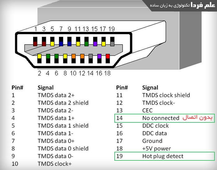 تفاوت HDMI با HDMI ARC اینه که دو تا پایه ( پین ) که روی HDMI معمولی استفاده نمیشن ، توی HDMI ARC مورد استفاده قرار گرفتن . یکی پایه 14 و یکی هم پایه 19 . پایه 14 که No Connected بود و پایه 19 هم پایه Hot Plugged Detect هست . هر چیزی که hot plugged باشه ، بدون نیاز به خاموش کردن دستگاه شناسایی میشه . مثلا موقعی که شما یه فلش مموری USB رو به کامپیوتر یا لپ تاپ می زنید ، سریع شناسایی میشه بدون اینکه کامپیوتر رو ریست یا خاموش کنید ، اما اگه یه کارت گرافیک رو نصب کنید ، باید حتما دستگاه مجددا راه اندازی بشه تا اونو بشناسه . پس USB یه نمونه از دیوایس Hot Plugged هست . ویژگی HDMI ARC هم بدون خاموش کردن تلویزیون شناسایی میشه و این مسئله بخاطر وجود پایه 19 توی HDMI ARC هست .