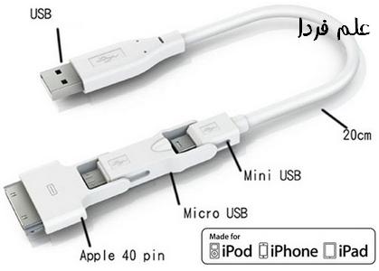 از آنجا که اکثرگجت های امروزی با پورت usb شارژ می شوند این کابل شارژ 3 کاره را طراحی کرده اند که 3 خروجی مختلف مینی یو اس بی ( Mini USB ) ، میکرو یو اس بی ( Micro USB ) و پورت 40 پین محصولات اپل مثل آیفون و آیپد به شما می دهد . برای شارژ دستگاه های خود نیازی نیست که سر کابل را با یکدیگر تعویض کنید بلکه بسته به نیاز شما پورتی که نمی خواهید را درمیاورید . در واقع ورودی هر کدام از آنها به خروجی دیگری وصل شده . کمی به شکل نگاه کنید خودتون متوجه خصوصیت جالب و منحصر به فرد این کابل می شوید . ایده جالبیه .