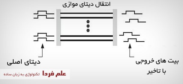 یه مشکل مهم تر این بود که چجوری این 32 تا سیم رو روی مادربورد پیاده سازی کنن ! خب امکان این نبود که سیم ها از نظر طول یکسان طراحی بشن واسه همین مشکلی به نام Clock Skew به وجود میومد . یعنی چی ؟ یعنی به خاطر تفاوت طول مسیرها ، یه بیت زودتر می رسید به مقصد و یه بیت دیرتر . اون بیتی که زودتر می رسید حق برگشت نداشت تا زمانی که همه بیت ها برسن . اینجوری تاخیر زمانی زیاد میشد .