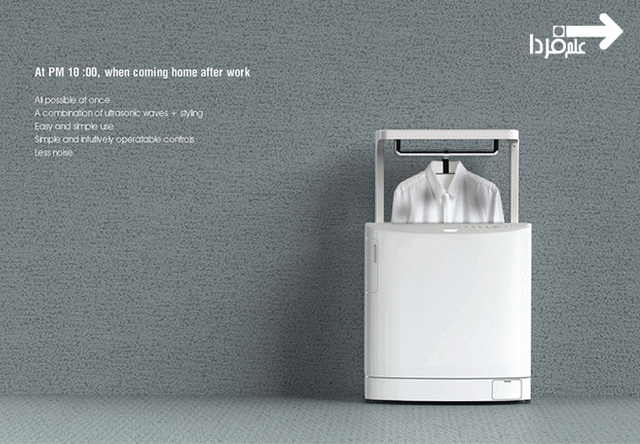 Jiyeun Yoon یک ماشین لباس شویی مدرن و خلاقانه به نام Pop-Up Laundry طراحی کرده که برای زندگی آپارتمانی و خونه های کوچولو خیلی کاربردی و مناسبه. فقط کافیه لباس ها رو روی رخت آویز این ماشین بذارید و بعدش با فشار یک دکمه لباس ها میرن داخل دستگاه و شسته میشن. شما می تونید شب قبل از خواب لباس ها رو تو این ماشین لباس شویی جمع و جور بذارید و صبح که از خواب بیدار شدین لباس هاتون رو تر و تمیز تحویل بگیرید رو بپوشید! این دستگاه برای افراد مجرد بسیار بسیار مناسبه .